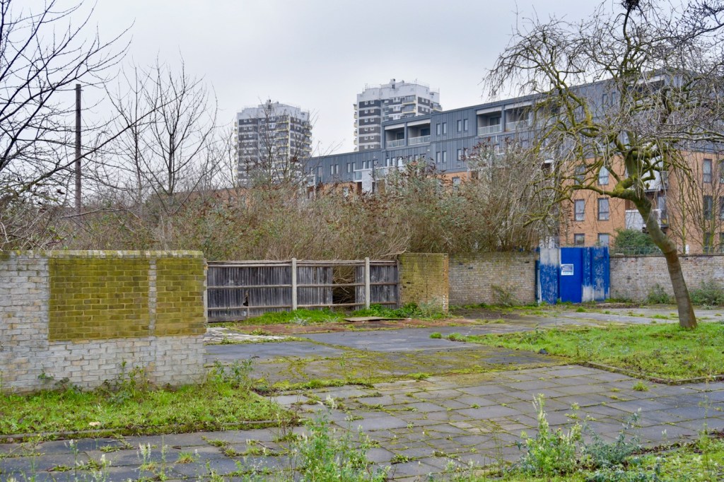 The temporary fences surround what was the trackbed of the Woolwich Branch of the North London Line. Crossrail is now buried beneath, surfacing a little to the west to use some of the previously abandoned NLL infrastructure.